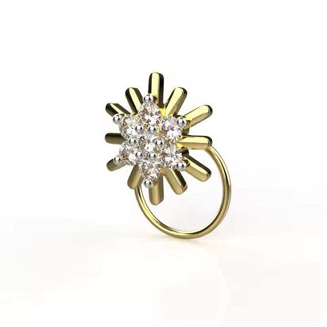 14K Gold Real Round Diamond Nose Pin with 0.20TCW Floral Shape Elegant Diamond Necklace Accessory