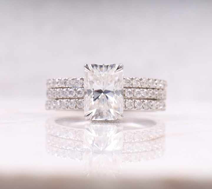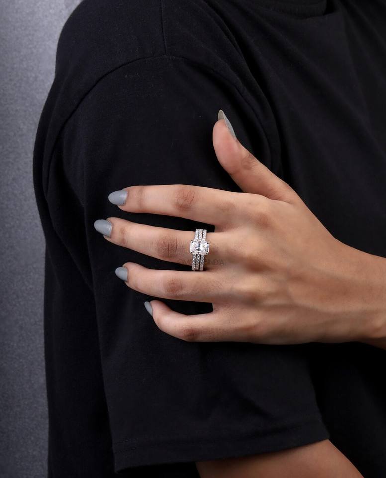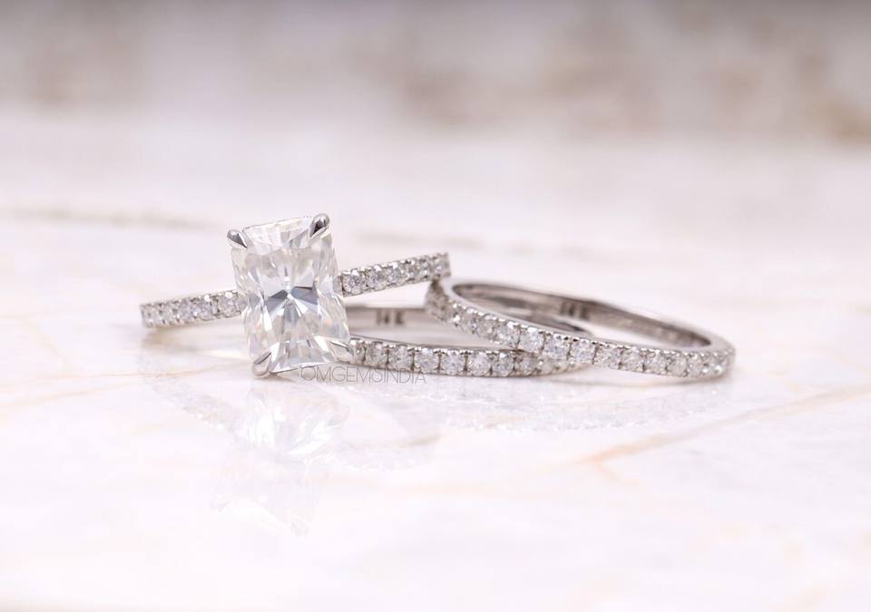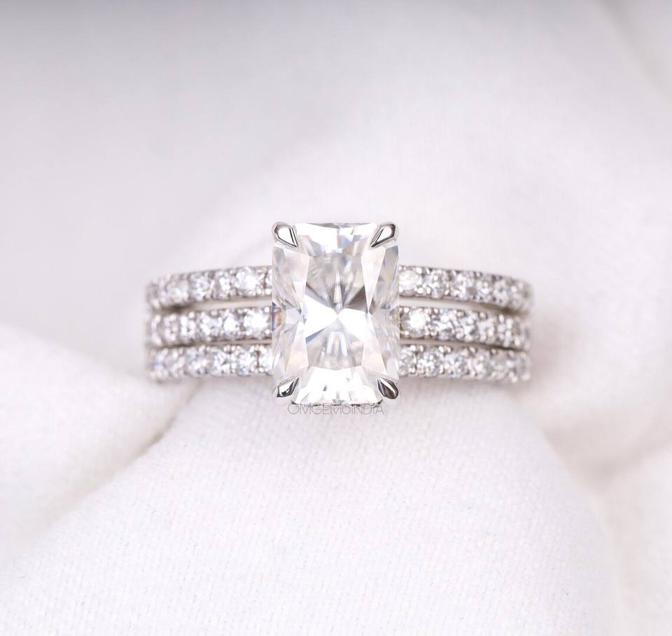 14K Gold Stackable Diamond Ring Set | D- VVS Moissanite Engagement Ring | Wedding-Anniversary Ring | Minimalist Gold Jewelry