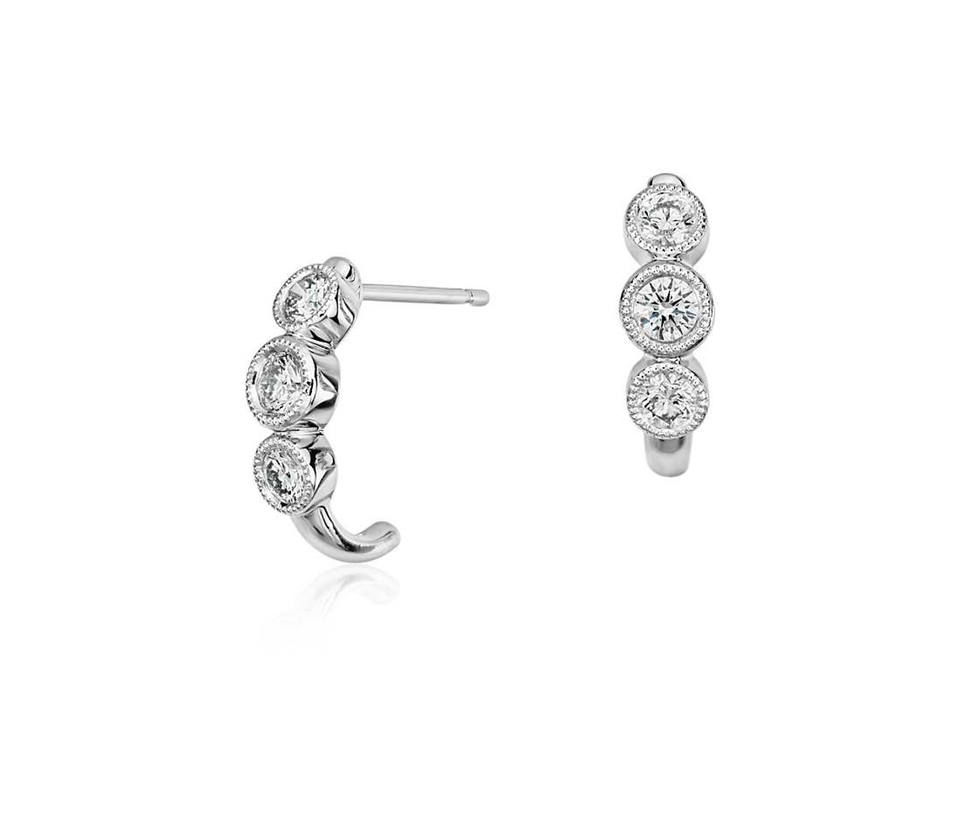 14K Gold Three Stone Milgrain Design Drop Lab Grown Diamond Stud Earrings