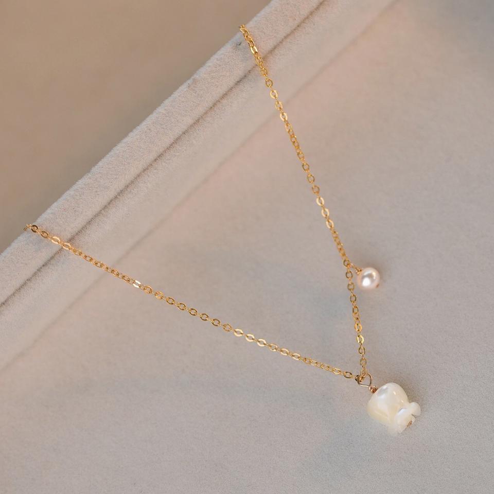 14K Gold Wrapped Natural Shell Lily Flower Pearl Necklace Adjustable Clavicle Chain 2022 Spring/Summer New Collection