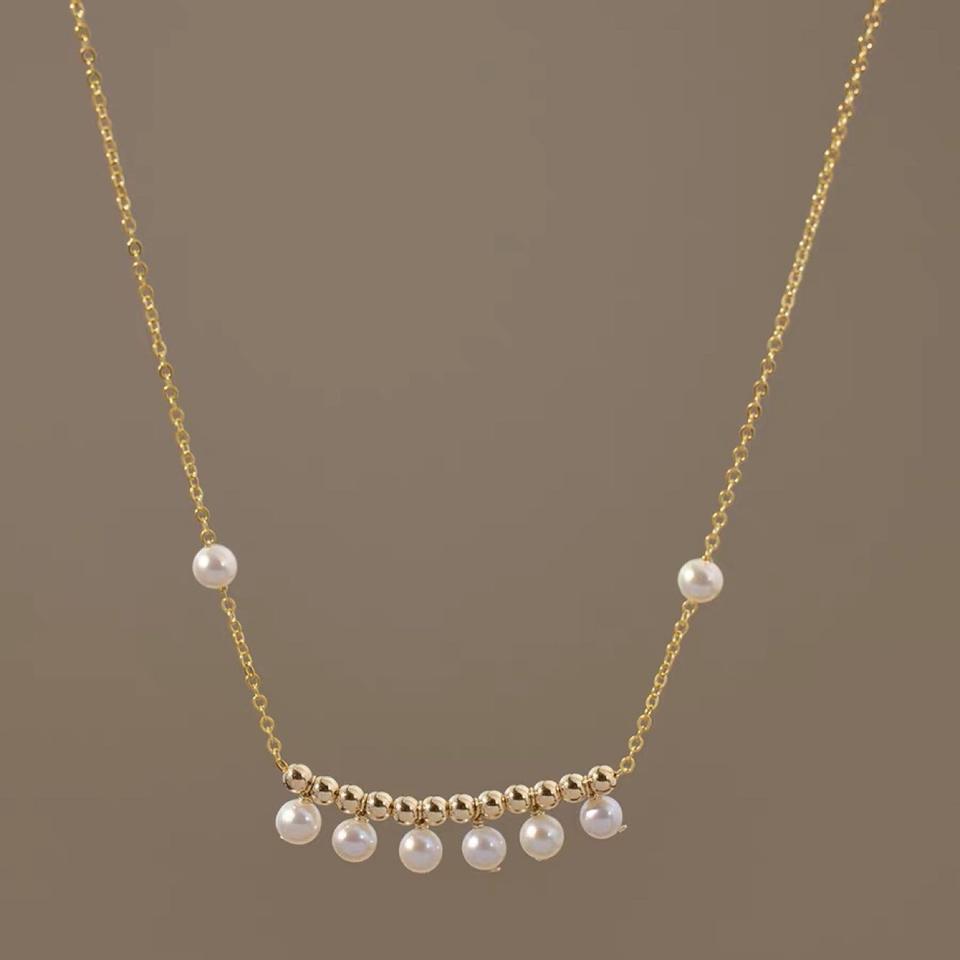 14K Gold Wrapped Simple Temperament Versatile Commuting INS Niche One Character Smile Natural Freshwater Pearl Necklace