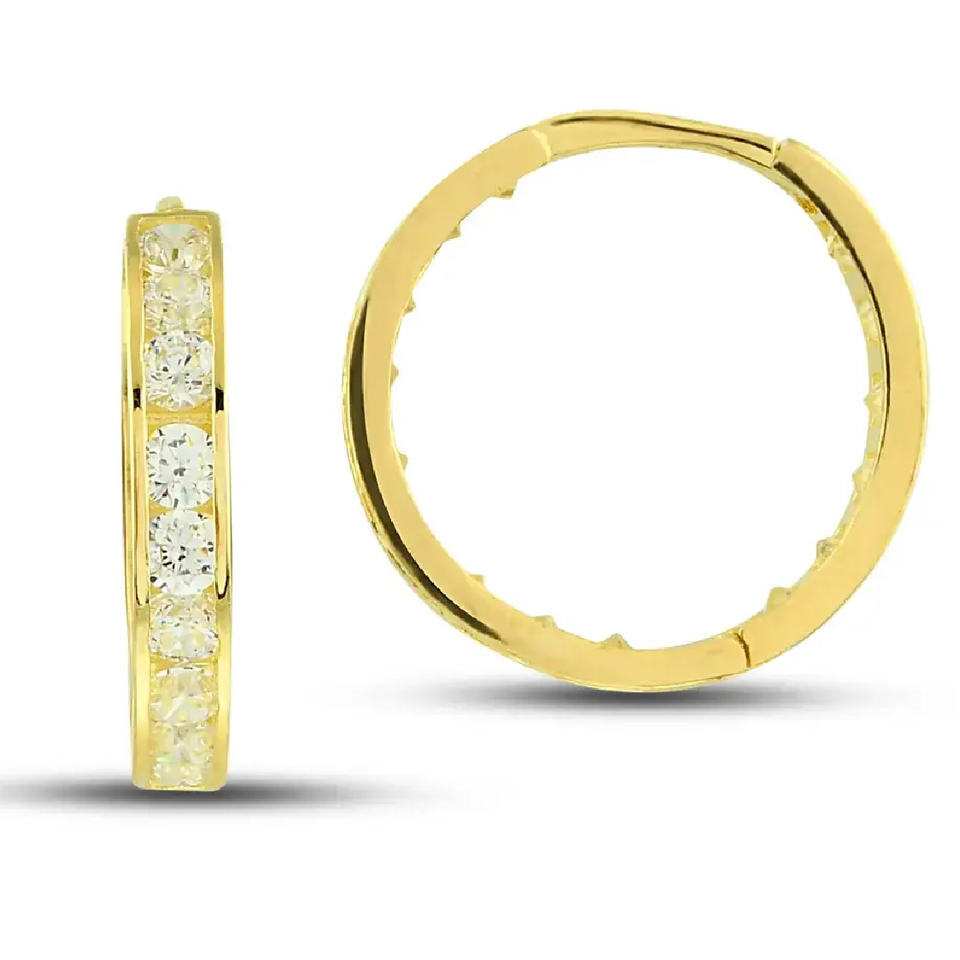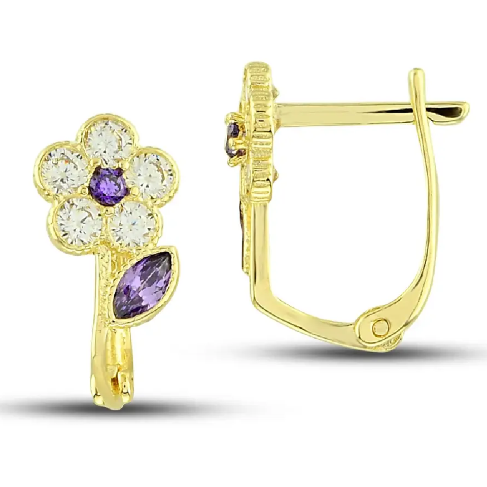 14K High Quality Pure Gold Dangle Earrings for Kids Trendy Flower Zircon Design Fine Enamel Work Handmade Turkey Perfect Gift