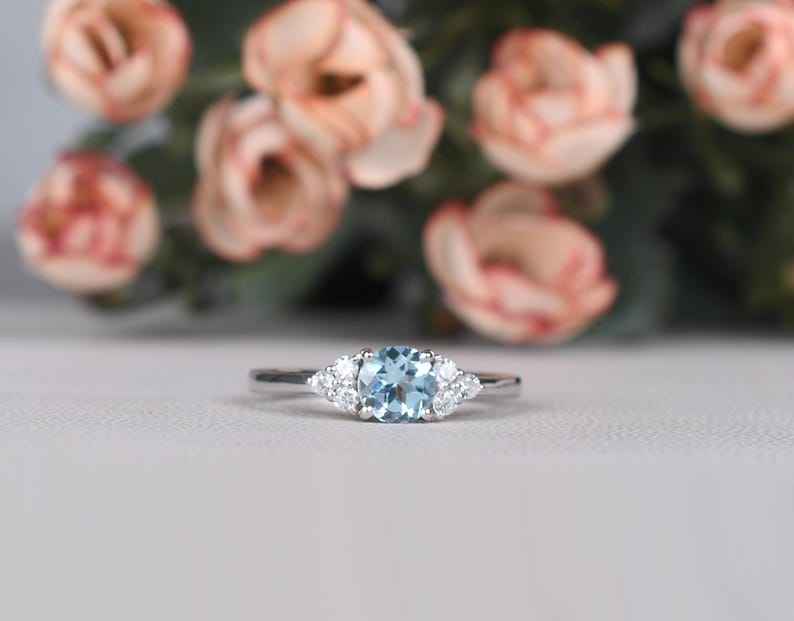 Keyword:Genuine Rare Aquamarine Stacking Ring Displays Soft Blue Elegance