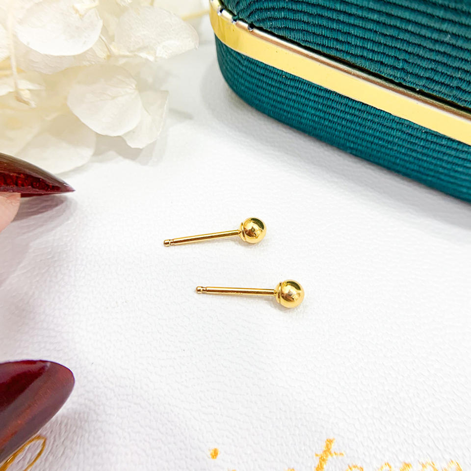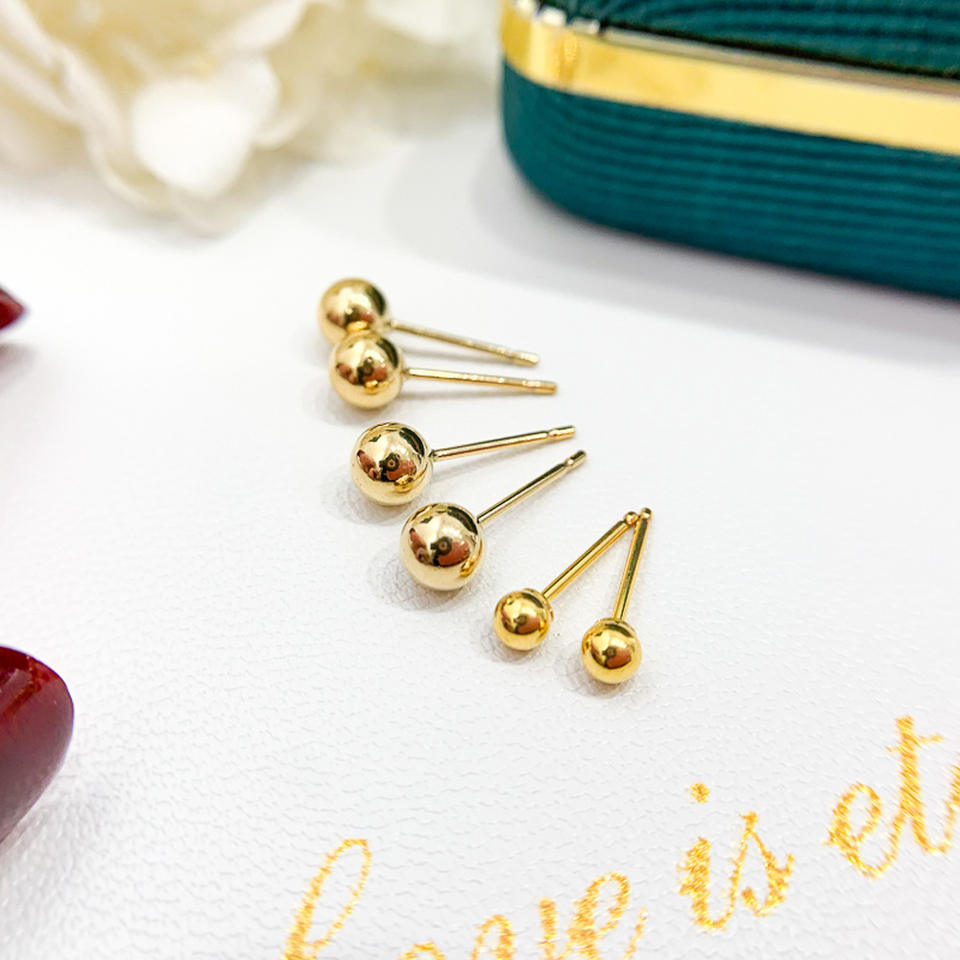 14K Package DIY Pearl Accessories Smooth Cast Gold Ball Nails for Male Female Empty Support Stud Earrings Fashion Craftsmanship