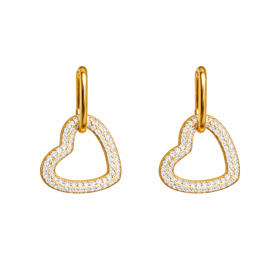 14K Pure Gold Dangling Open Heart Hoop Earring With Pave Lab Grown Diamond Love Splendor Earring Romantic Gift Jewelry For Women