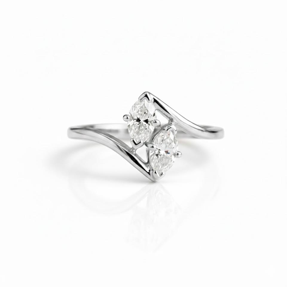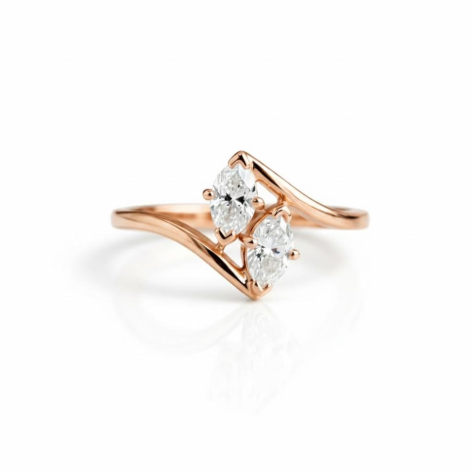 product name:14K Gold Toi et Moi Two Stone Marquise Cut Diamond Band