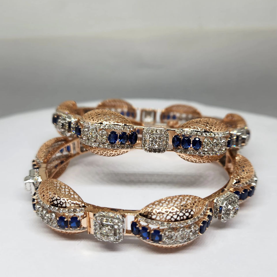 14K Rose Gold Diamond Bangle with Blue Stone Natural HI-SI IGI Certified Fine Jewelry Diamond Bracelet