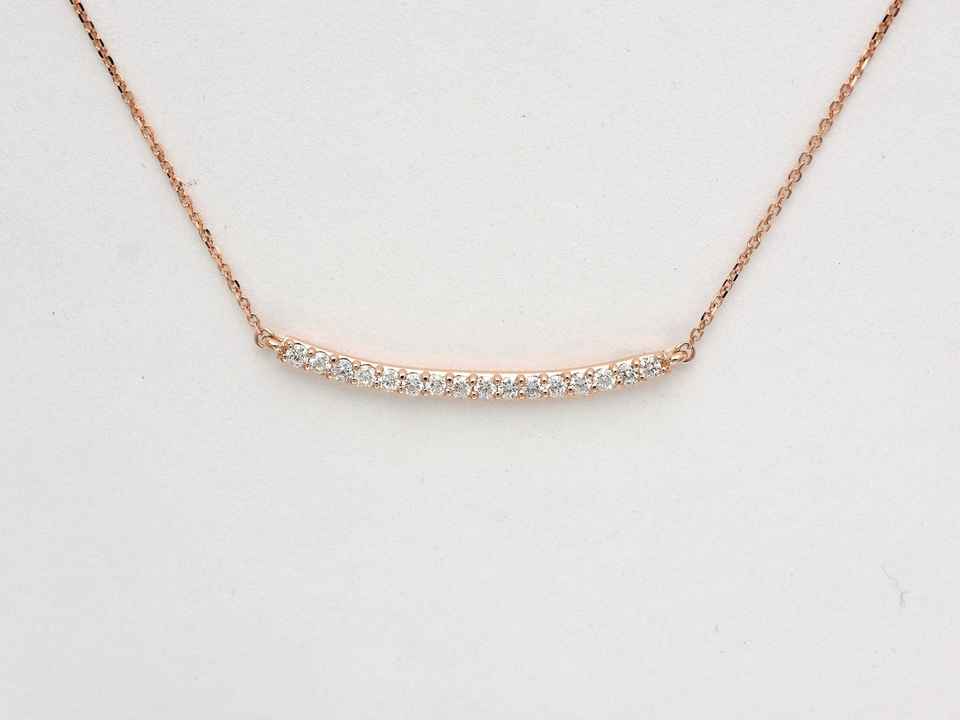 14K Rose Gold Diamond Bar Necklace with Lab Grown Diamonds Curved Layering for Bridal Jewelry Gift for Her