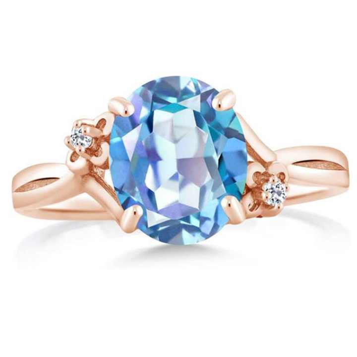 Natural Aquamarine Raw Ring:Rhodium/Yellow gold/Rose gold