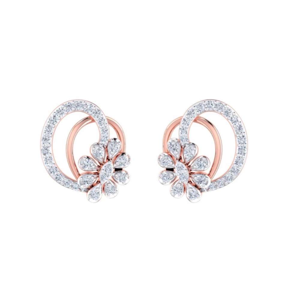 14K Rose Gold Flower-Shaped Stud Earrings for Women for Engagement Wedding Anniversary or Party with Diamond As Main Stone