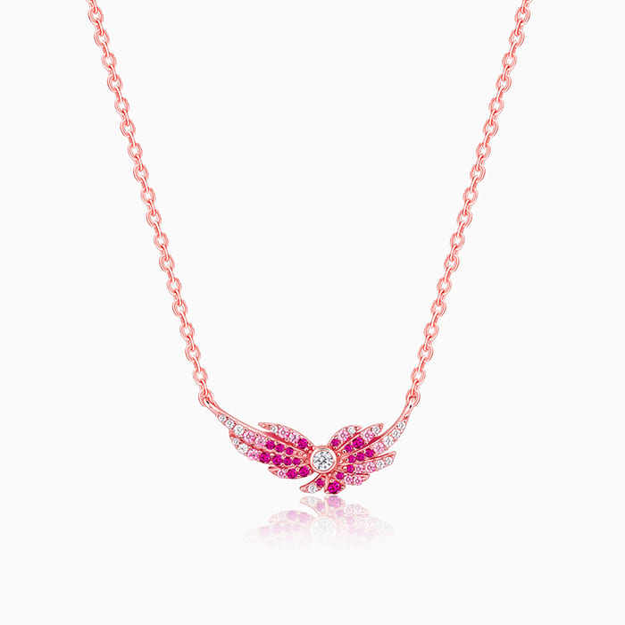 14K Rose Gold Fly in Pink Necklace with Moissanite Diamond Ruby Box Chain Trendy Engagement Jewelry