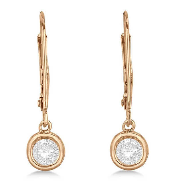 14K Rose Gold Leverback Dangling Drop Diamond Earrings 1.00ct