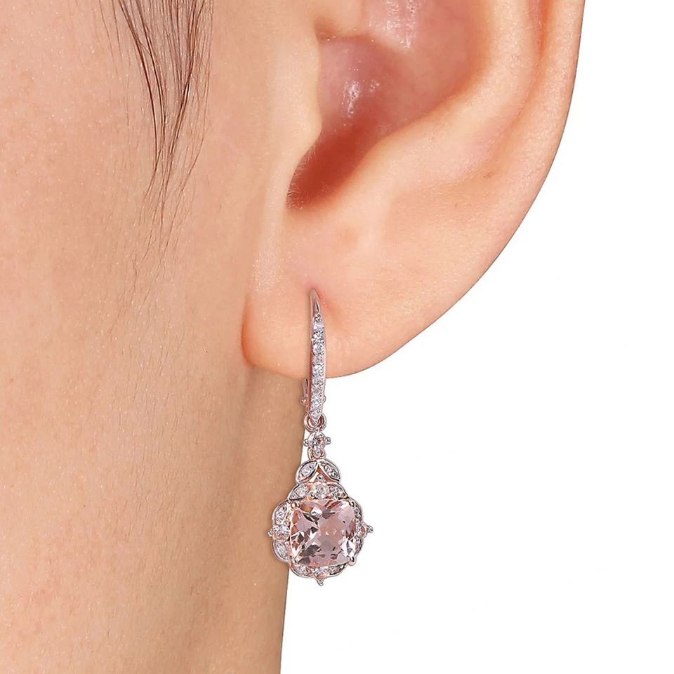 14K Rose Gold Plated Natural Morganite Earrings Gemstone Jewelry Set Sterling Silver Platinum CZ Diamond Necklace Wedding Gifts
