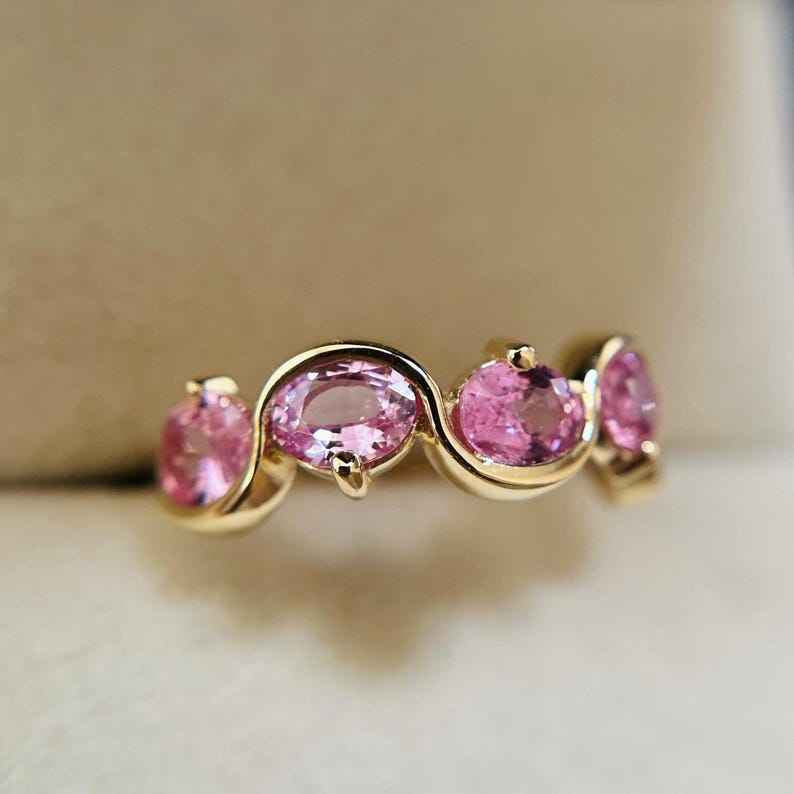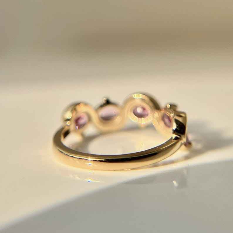 14K Rose Gold Plated Sterling Silver Wavy Pink Sapphire Religious Ring Stackable Birthstone Jewelry Handmade Engagement