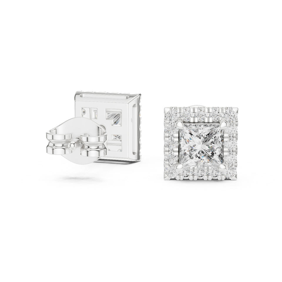 14K Rose Gold Princess & Round Cut Diamond Stud Earrings for Women | Engagement Wear | New Grown Diamond