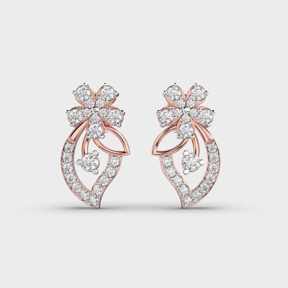 14K Rose/White/Yellow Gold Vintage Floral Diamond Earrings Leaf Motif | Luxury Women's Fine Jewelry Lab Grown Rhodium Plated
