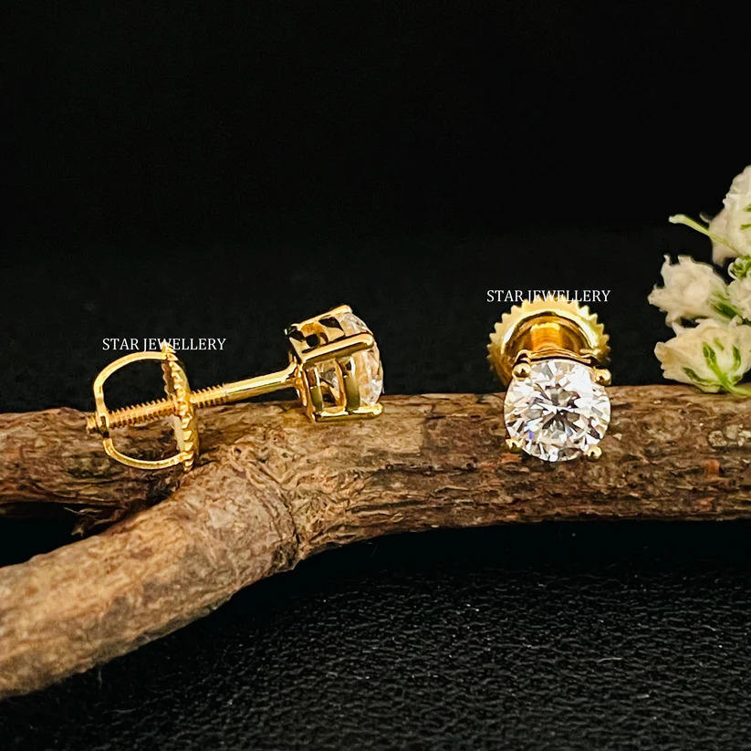14K Solid Gold 1.00 Ct Solitaire Moissanite Diamond Stud Earring Fine Jewelry Christian Gift
