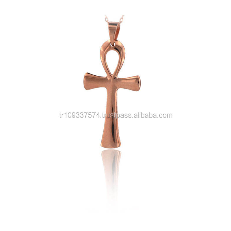14K Solid Gold Ankh Cross Charm Necklace Cross Pendant