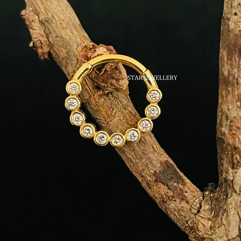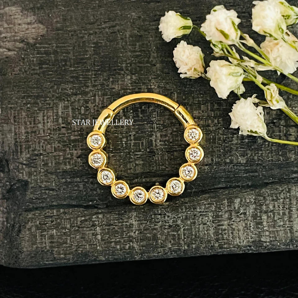 14K Solid Gold Bezel Set Minimalist Diamond Daith Clicker Fine Jewelry.