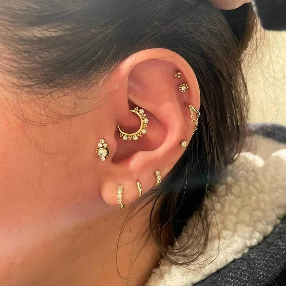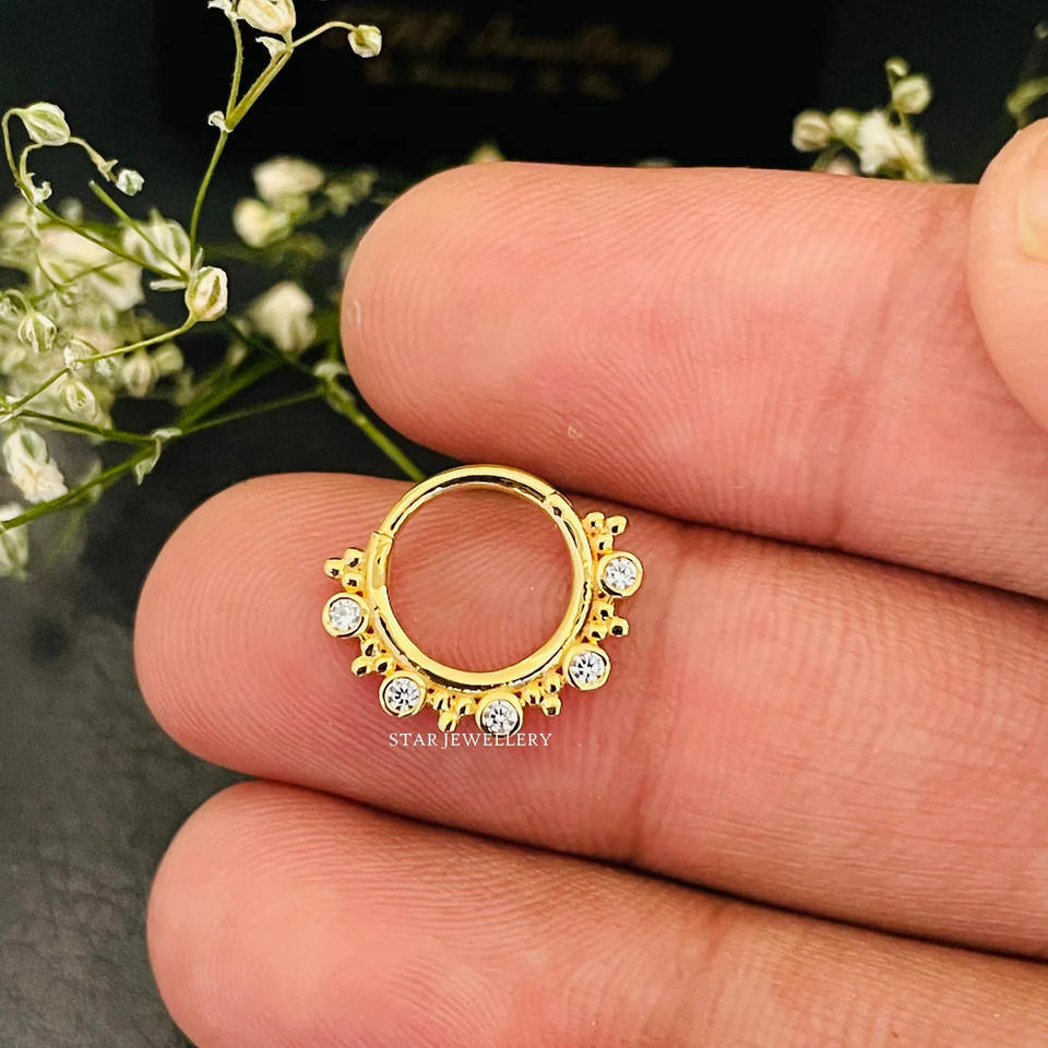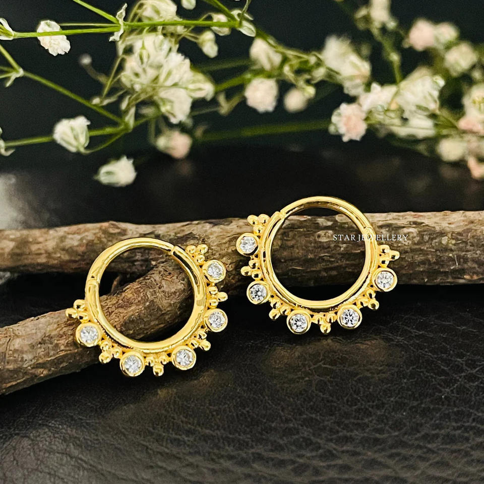 14K Solid Gold Bezel Set Natural Diamond Daith Piercing Fine Jewelry.