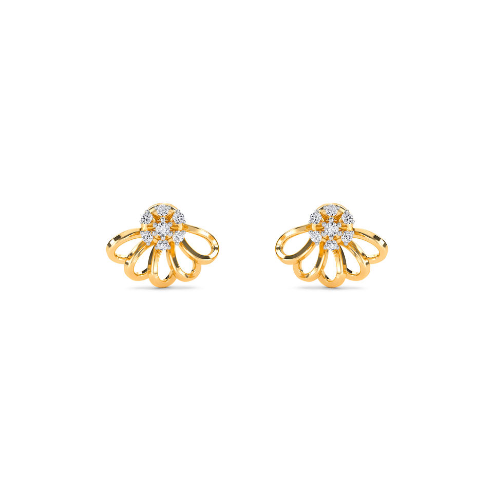 14K Solid Gold Fan-Shaped Floral Diamond Stud Earrings | 0.13 Ct Lab Grown Diamonds | Rose, White & Yellow Gold Options