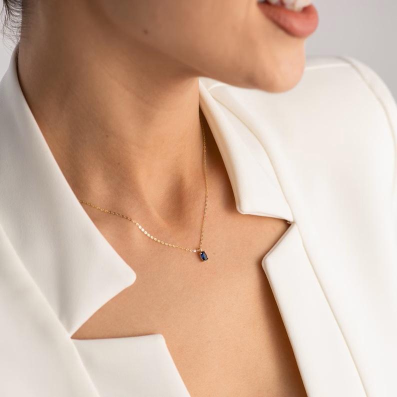14K Solid Gold Fine Pendant Necklace Sapphire Solitaire with Birthstone Gemstone Elegant Solitaire Style