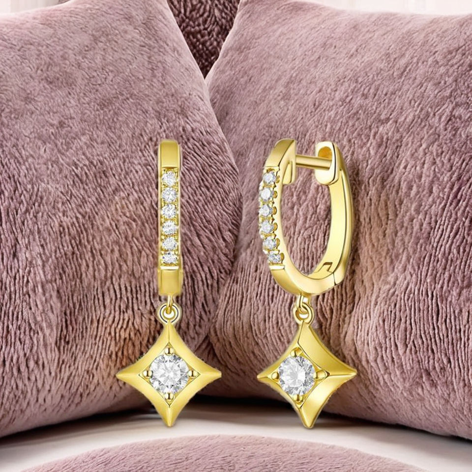 14K Solid Gold Gold Cute Trendy Minimal Geometric Custom Drop Hoop Dangling Lab Grown Diamond Moon Shape Tiny Stud Earrings Gift
