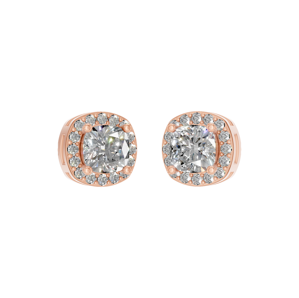14K Solid Gold Lab Grown Diamond Cushion Cut Halo Stud Earring IGI Certified Luxury Gold Plated Party Fine Jewelry for Women