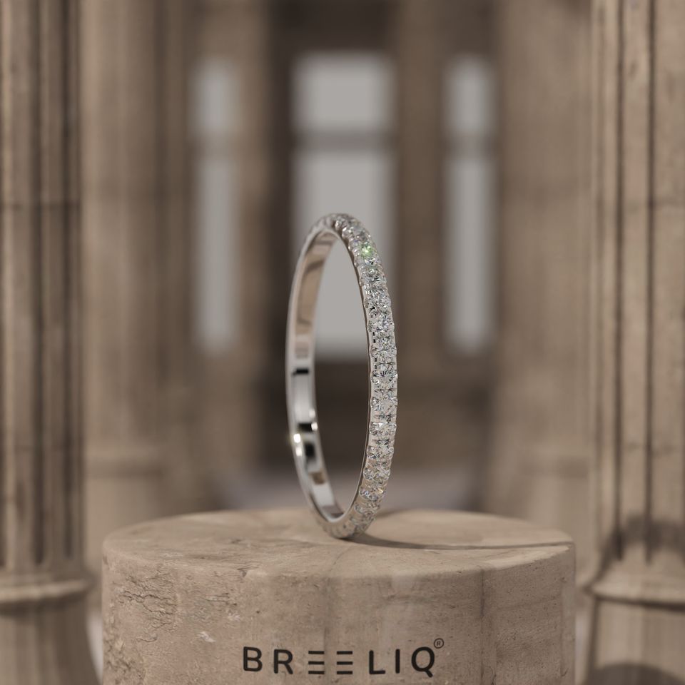 14K Solid Gold Micro Pave Lab Grown Diamond Ring Thin Stackable Eternity Wedding Band for Women