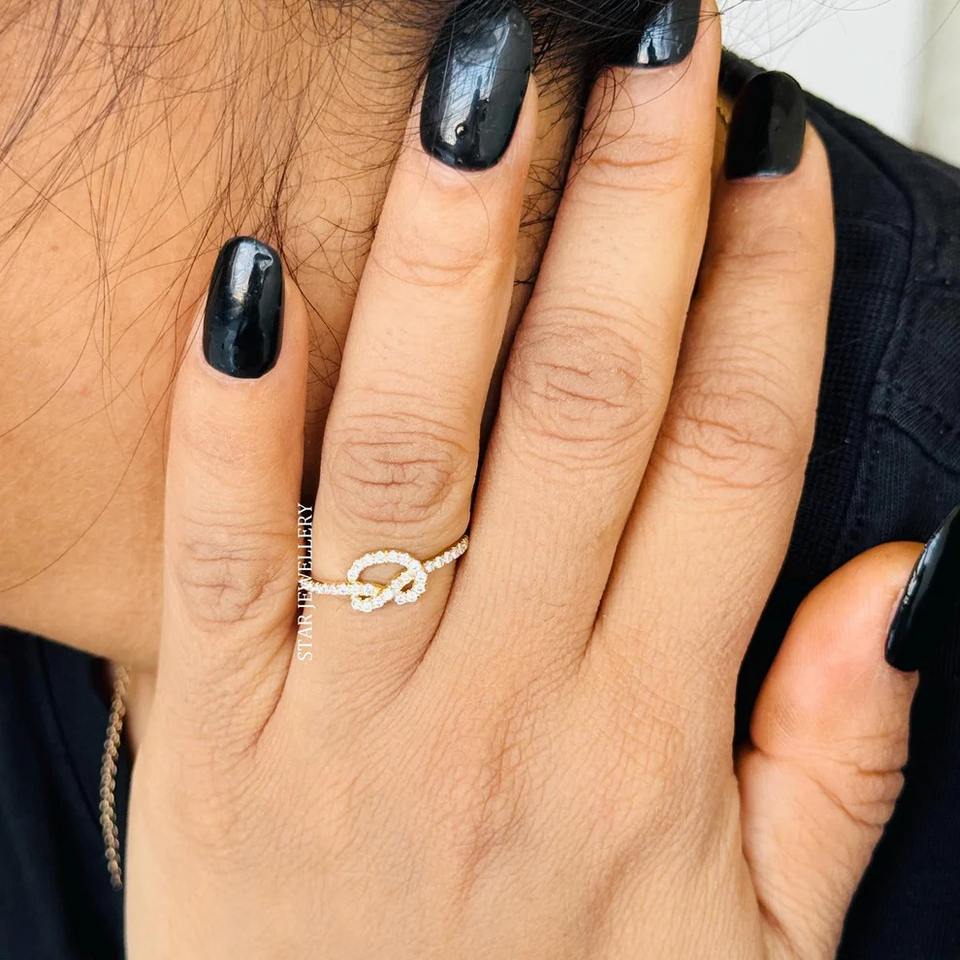 14K Solid Gold Minimalist Tie knot Promise Ring.
