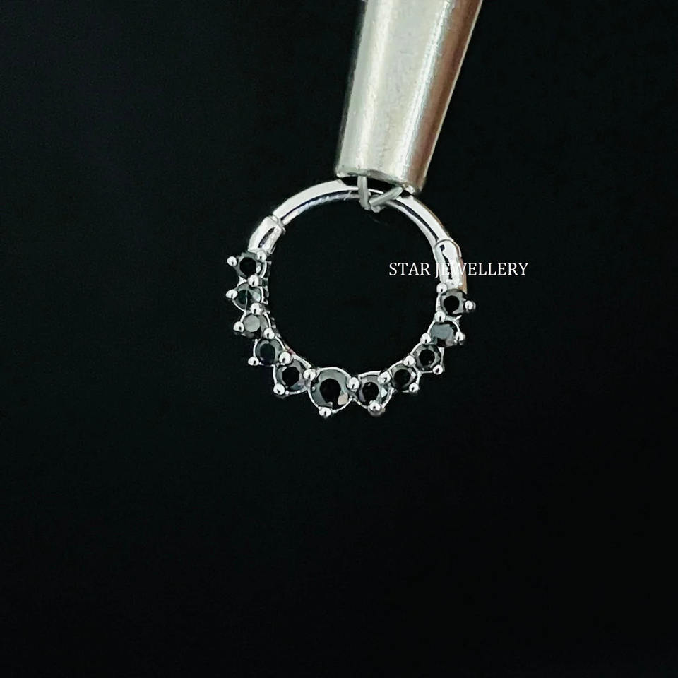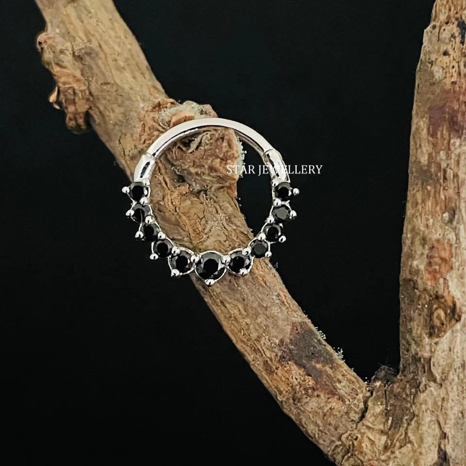 14K Solid Gold Natural Black Diamond Daith Piercing FIne Jewelry.