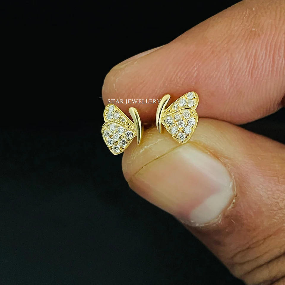 14K Solid Gold Natural Diamond Butterfly Fine Jewelry Piercing for Conch Helix Rook Tragus Anti Tragus Earlobe.