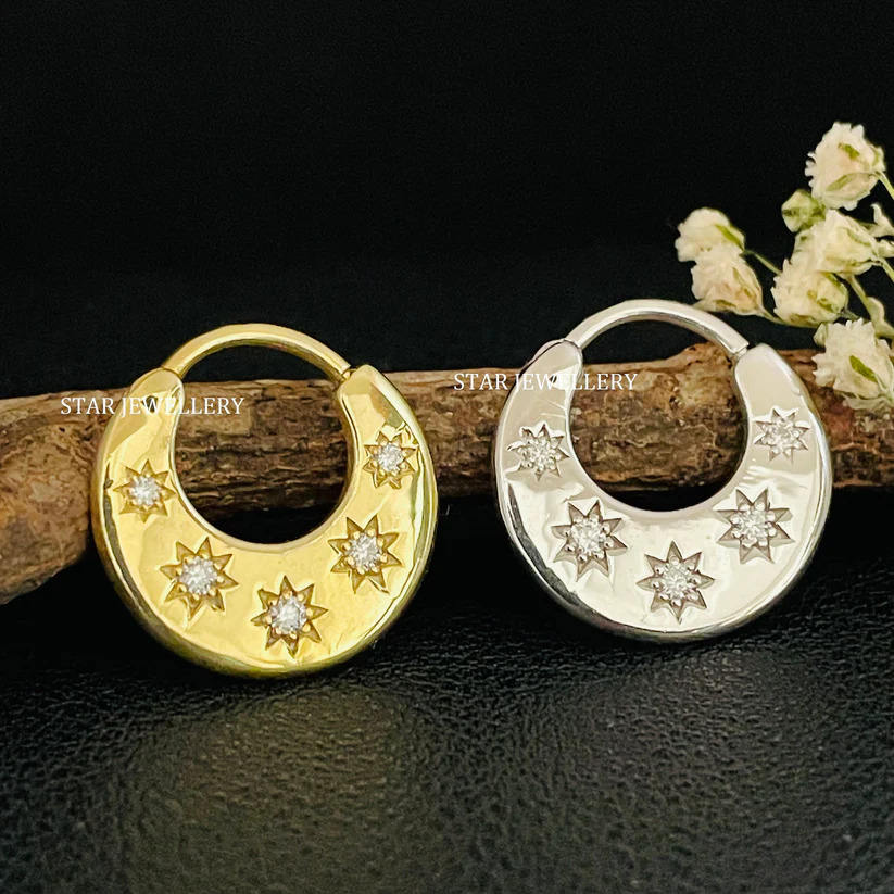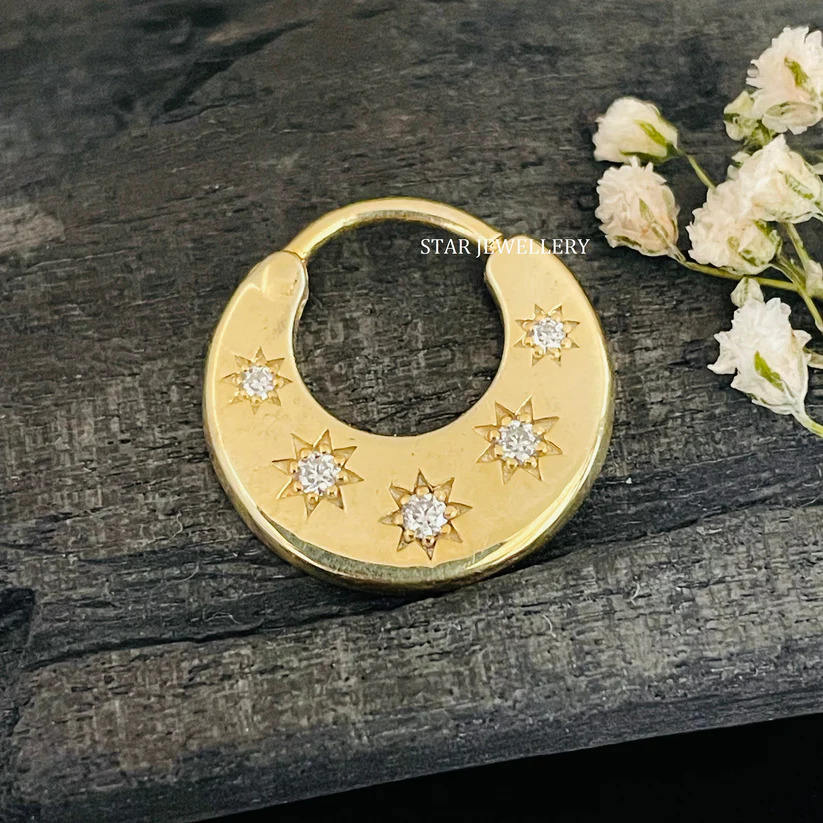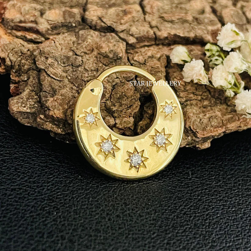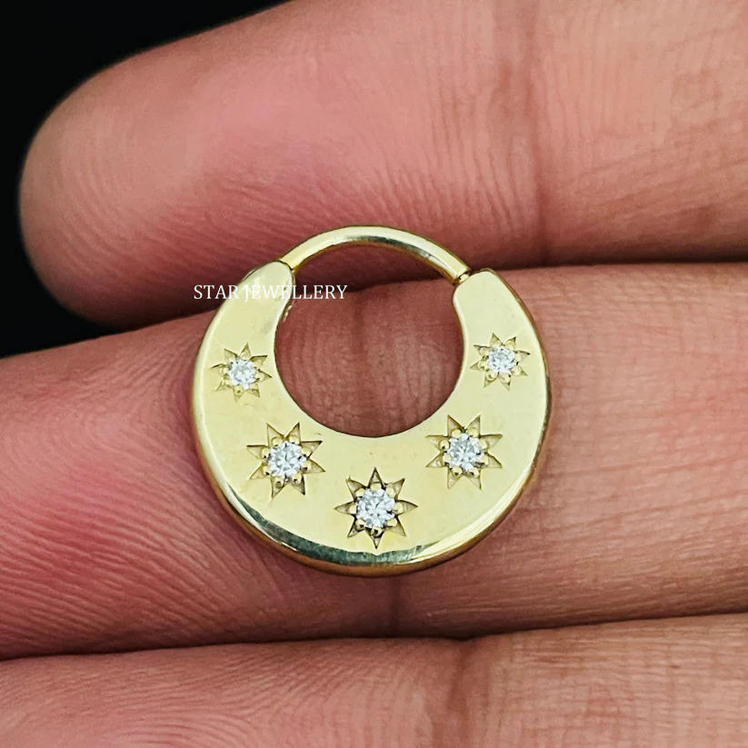 14K Solid Gold Natural Diamond Crescent Septum Piercing Luxury Gift Jewelry in Rose/Yellow Gold
