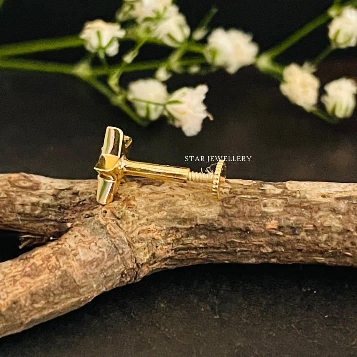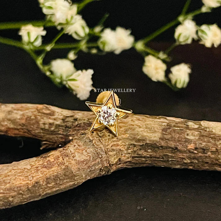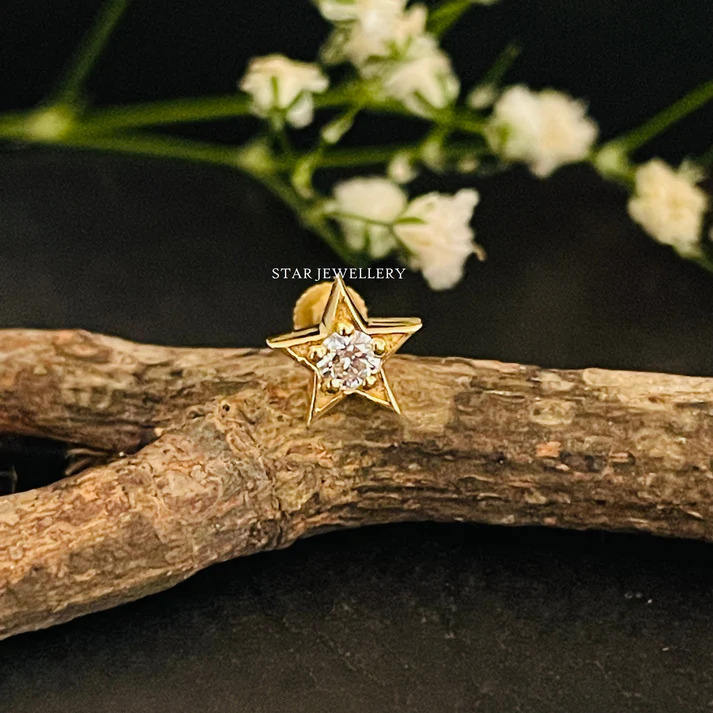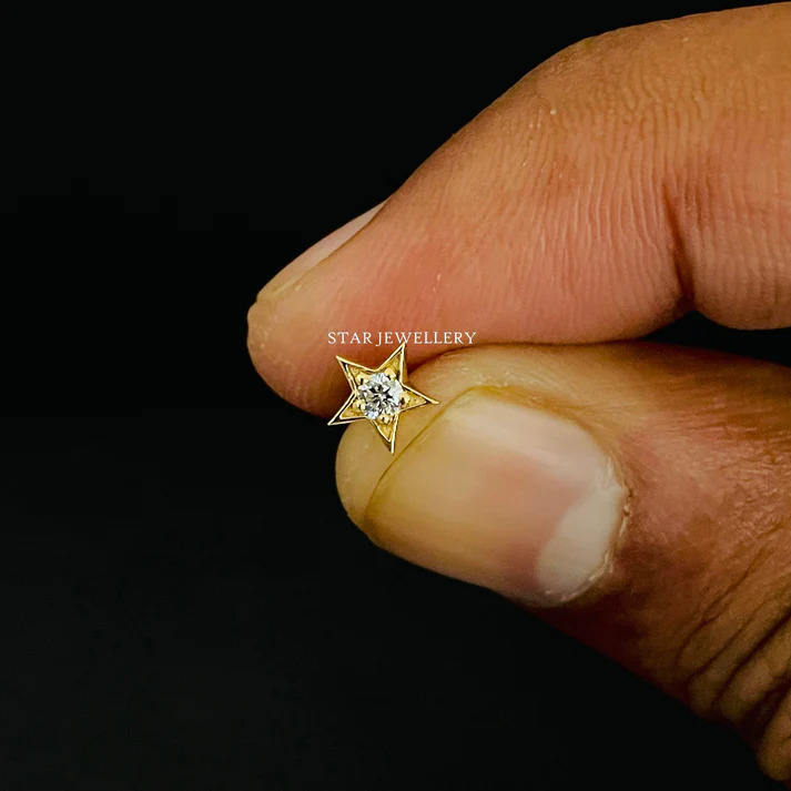 14K Solid Gold Natural Diamond Star Nose/Ear Stud Fine Jewelry.