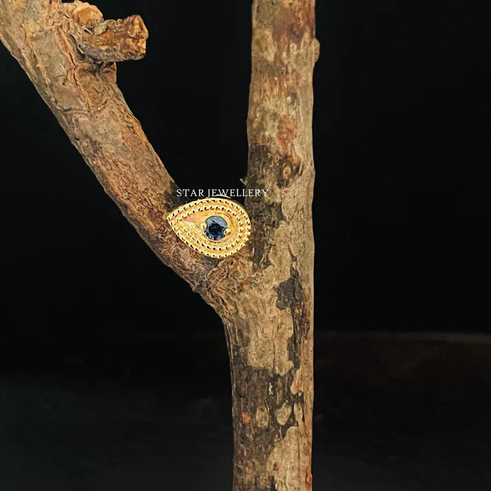 14K Solid Gold Natural Sapphire Stone Pear Shape Stud Piercing Fine Jewelry.