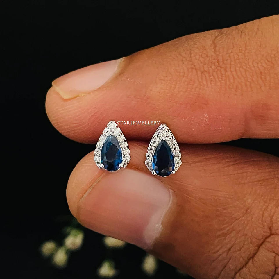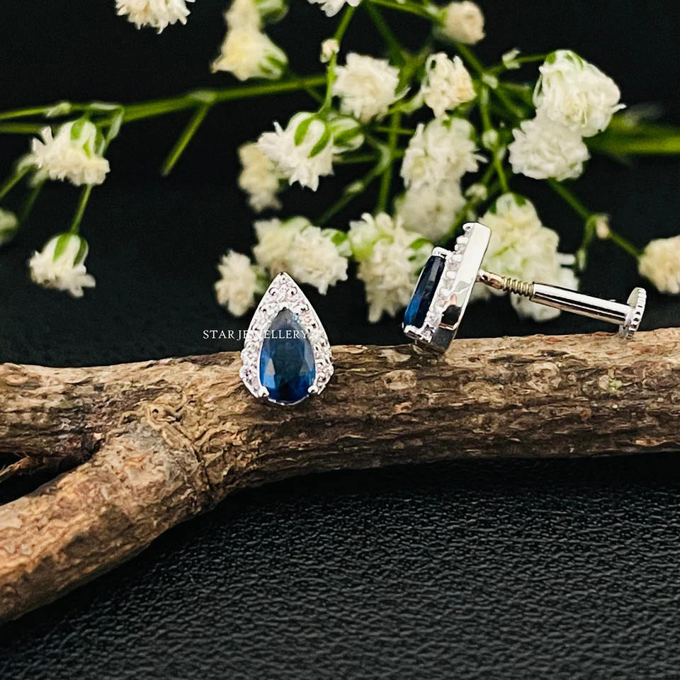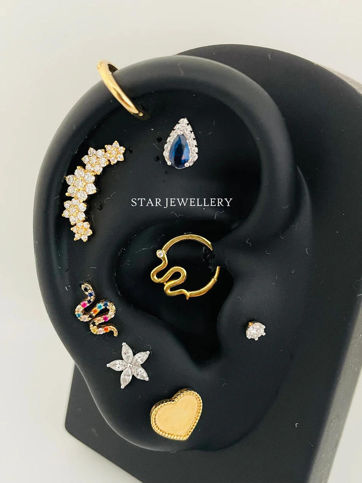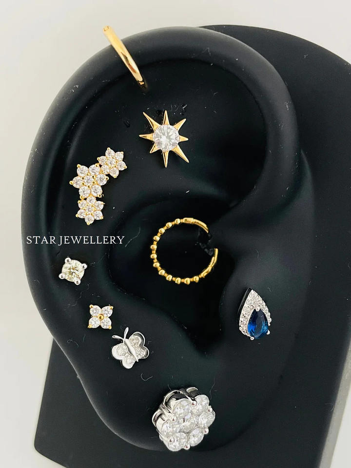 14K Solid Gold Pear Shape Anti Tragus Fine Jewelry Piercing with Blue Sapphire.