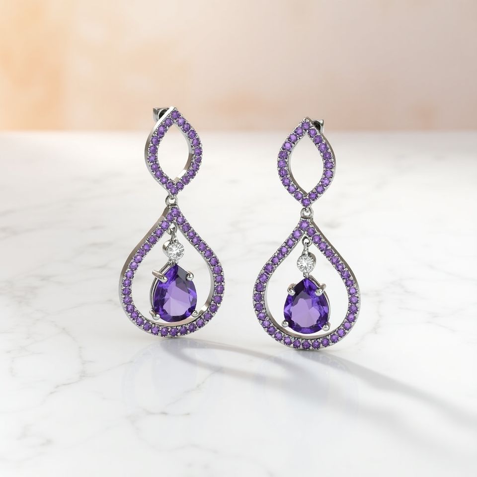 14K Solid Gold Platinum Rose Gold Stud Earrings for Women Elegant Teardrop Design with Lavender Sapphire Diamond Elegant Jewelry