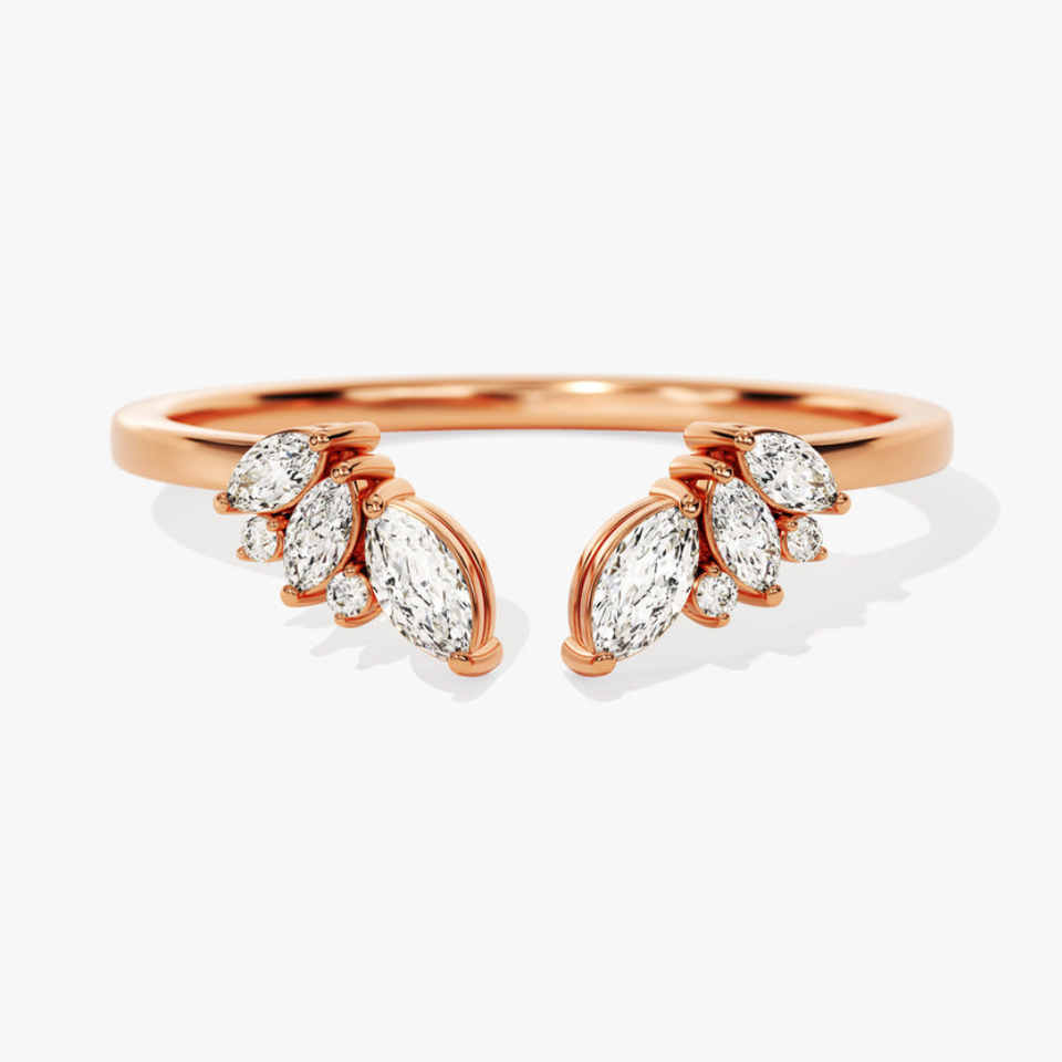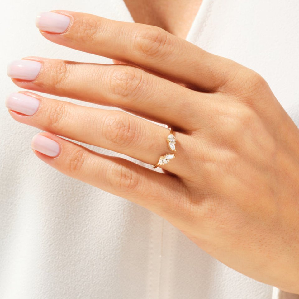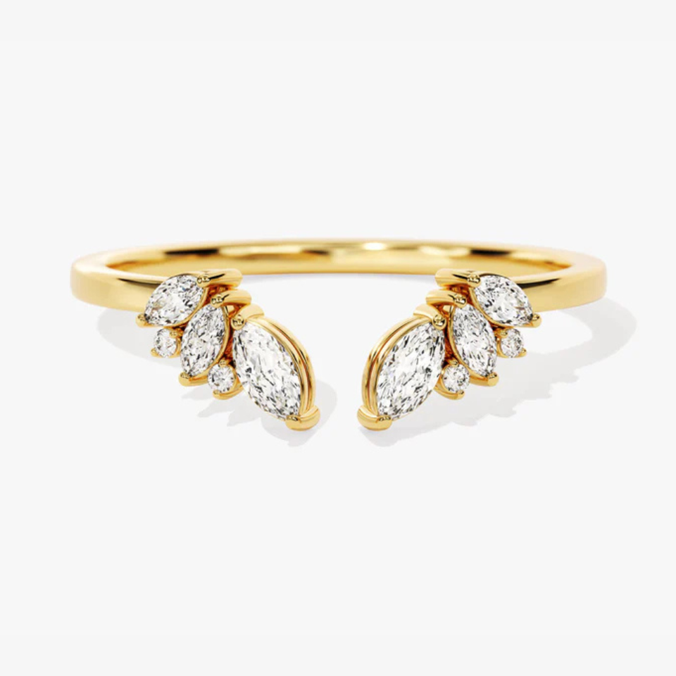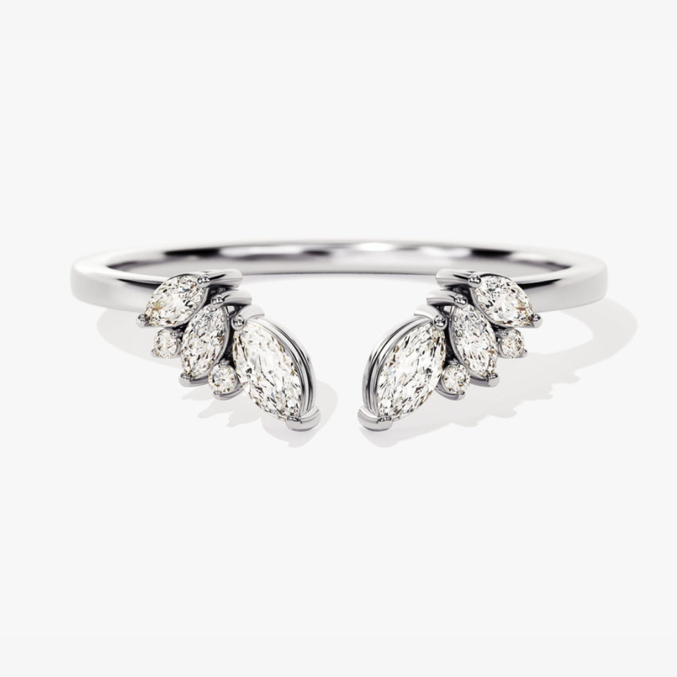 14K Solid Gold Rhodium Open Leaf Cluster Lab Grown Diamond Engagement Wedding Gift Ring 0.32 Ct Pear Cut Luxury IGI Certified