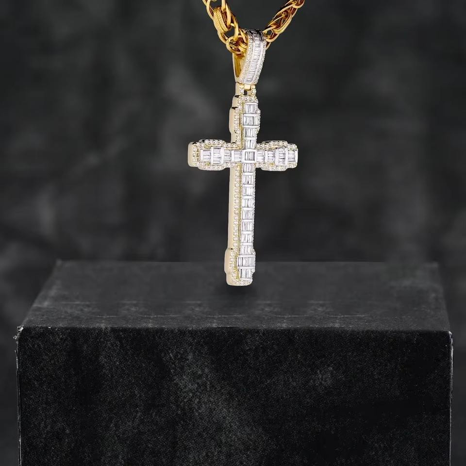 14K Solid Gold Rose_White_Yellow Classic Hip Hop Cross Diamond Pendant Necklace Brilliant Cut Lab-Grown Diamonds GIA Certified