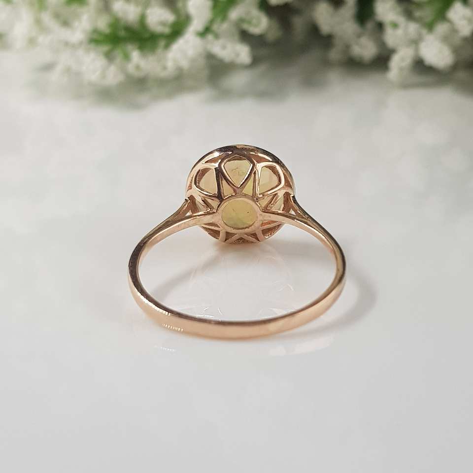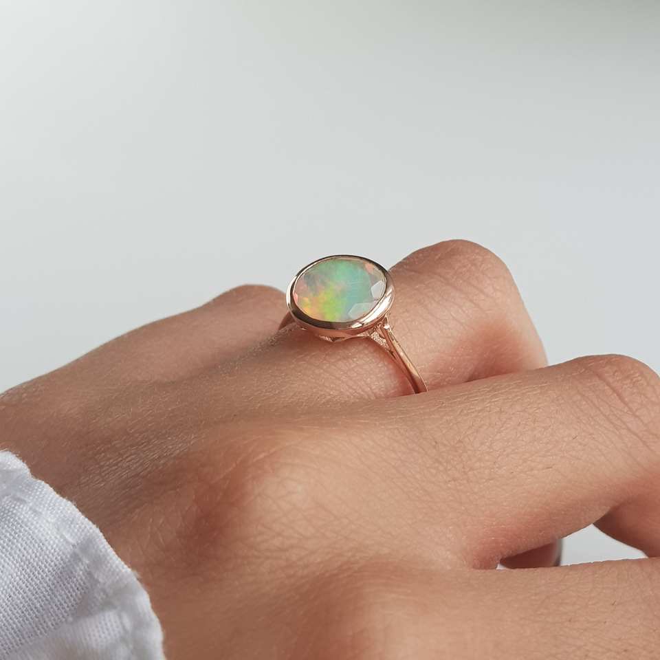 14K Solid Gold Cut Natural Ethiopian Welo Opal Solitaire Luxury Wedding Ring October Birthstone Bezel Setting Unisex OEM