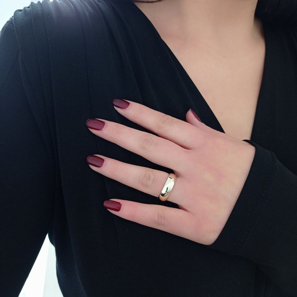 14K Solid Gold Shiny Dome Wedding Ring Handmade Promise Band Ring for Unisex Dainty Anniversary Gift for Her Turkish Jewellery