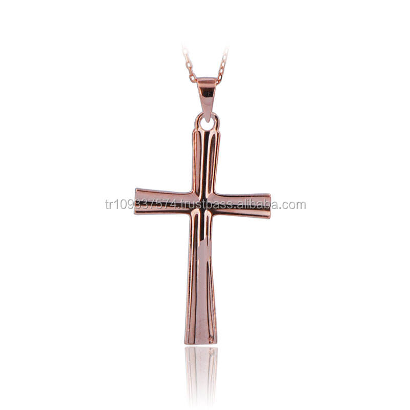 14K Solid Gold Vintage Style Cross Pendant Necklace Bright Fashion Art Jewelry for Women Handmade in Turkey-for Gift