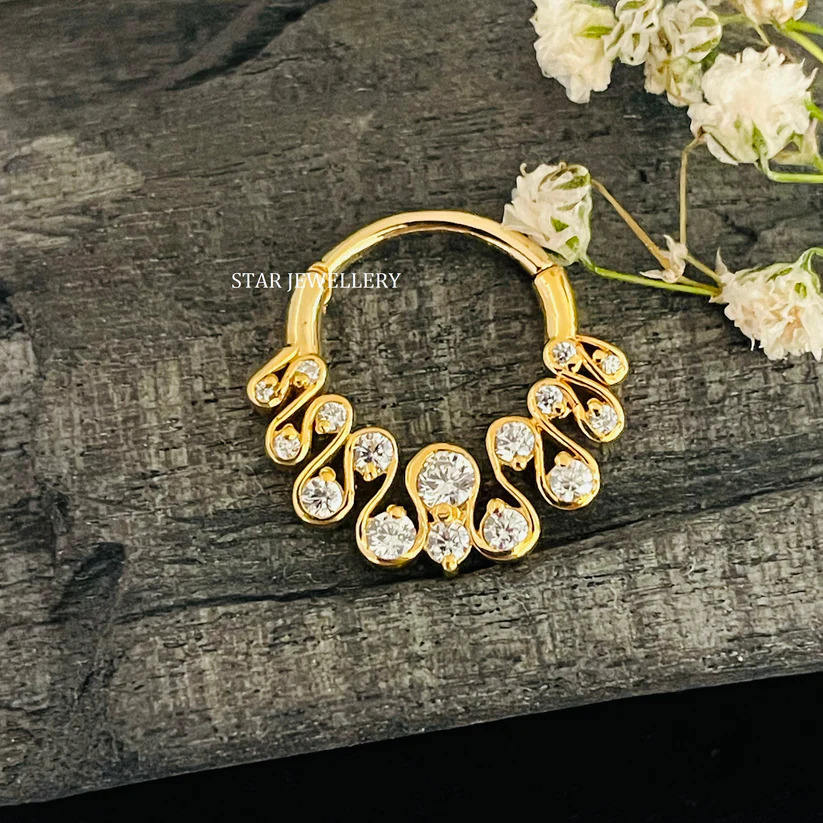 14K Solid Gold Zig Zag Natural Diamond Septum Nose Ring Fine Jewelry.