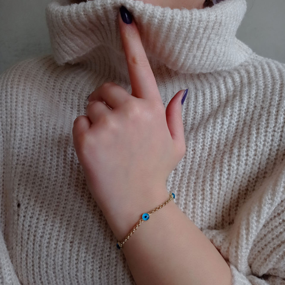 14K Solid Real Gold Turkish Evil Eyes Fine Jewelry Bead Charm Cheap Good Luck Bracelet Turkish Jewellery Traditional Bracelet