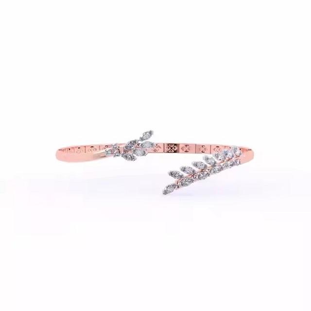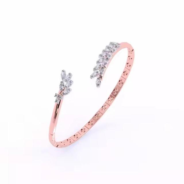 14K Solid White/Rose Gold Open Bracelet with Marquise Cut Lab Grown Moissanite Designer Layered Bracelets Fine Jewelry
