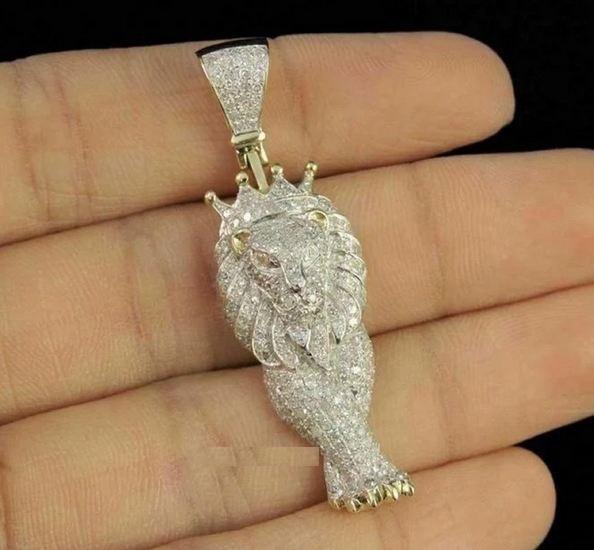 14K Two Tone Gold Plated 3.30Ct Round Cut Real Moissanite Bunny Cartoon Pendant with Diamond Fine Pendants & Charms for Parties