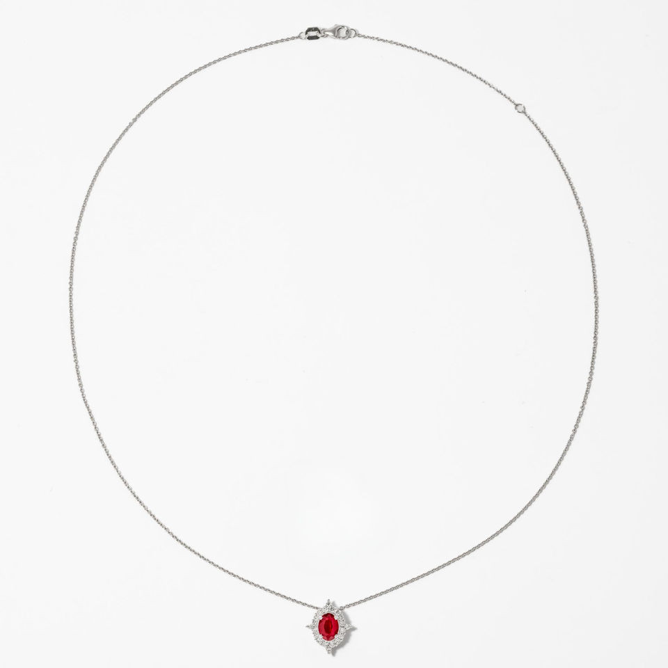 14K White Gold 0.90ct Oval Ruby and Lab Grown Diamond Halo Setting IGI Certified Pendant Necklace for Everyday Luxury