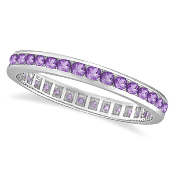 14K White Gold (1.00ct) Dainty Amethyst Channel Set Eternity Ring Band Fine Jewelry with Cut Stone Platinum Yellow Gold Material
