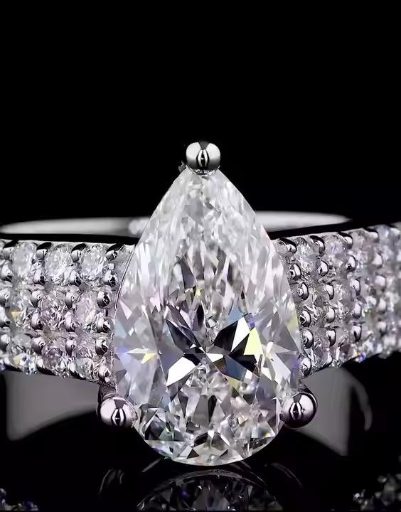 14K White Gold 2CTW VS1 Pear cut Lab Grown Diamond Engagement Ring Unique Anniversary Ring for Her Fine Jewelry