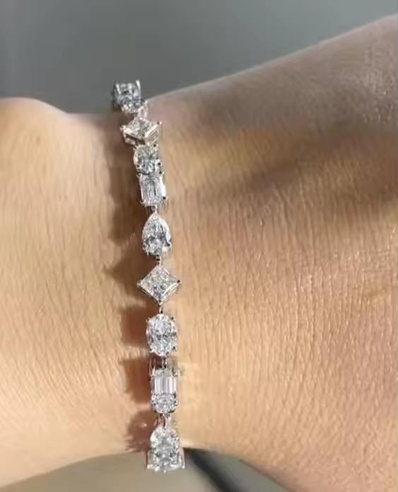 14K White Gold Fine Chain Tennis Bracelet 6.60ct Marquise Emerald Cut Multi-Cut Diamond Bezel-Set Lab Created Moissanite Bangle"